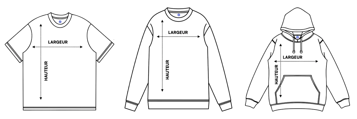 T-shirts | Largeur | Hauteur | SWEATSHIRTS | Largeur | Hauteur | SWEAT à capuches | Largeur | Hauteur |